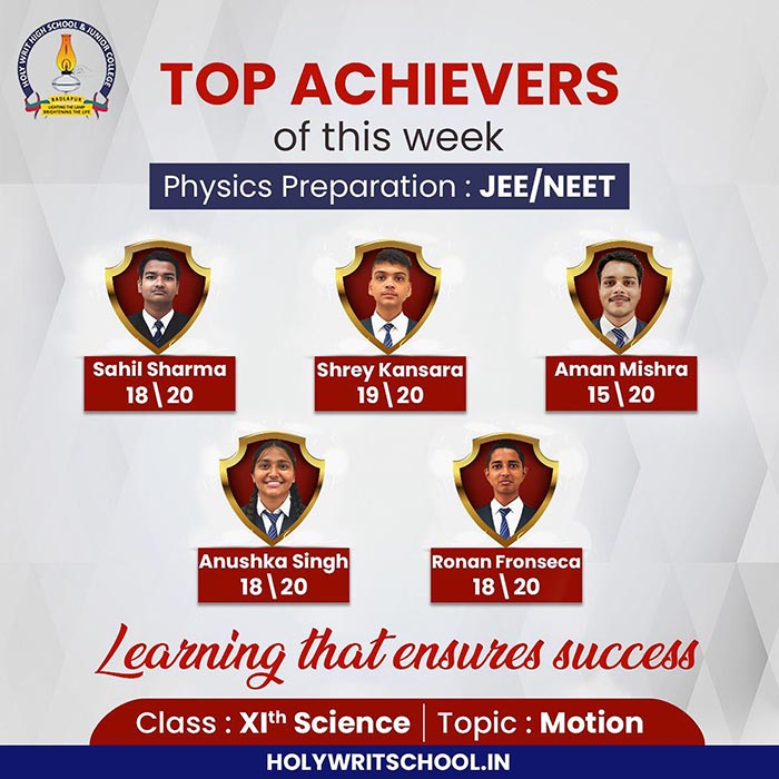 Congratulations to the Top Achievers of the week. We take immense pride in celebrating the accomplishment of our students and wish you all immense success in the future.